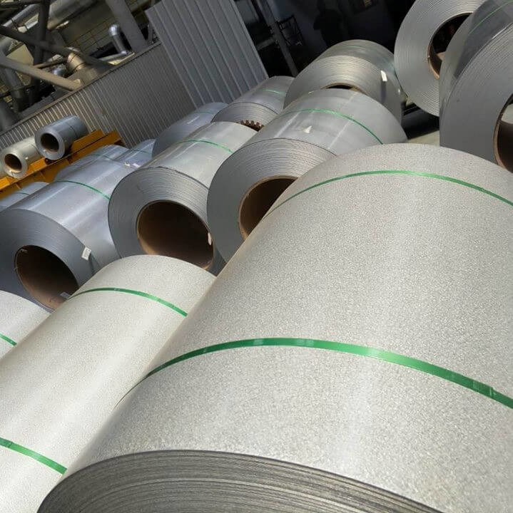 Galvalume Coil thành phần theo tỷ lệ trọng lượng của 55% nhôm, 43,4% kẽm, 1,6% silicon, ở nhiệt độ cao 600 đông đặc ở nhiệt độ cao và bề mặt tấm kẽm được nhôm hóa là một bông hoa sao phẳng mịn độc đáo, màu cơ bản là màu trắng bạc, cấu trúc lớp phủ đặc biệt làm cho nó có khả năng chống ăn mòn tuyệt vời